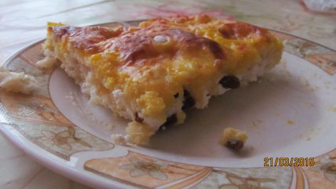 1-1-1 tálban összekeverjük a száraz és nedves hozzávalókat, illetve a tölteléket is. Egy jól kimargarinozott tepsibe (NEM kell sütőpapír) beleszórjuk a hozzávalókat eképpen: fele liszt, fele lötty, töltelék, fele liszt, fele lötty. Előmelegített sütőben közepes lángon kisütjük.